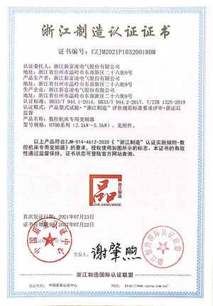 1月 富凌电气数控机床专用变频器浙江制造标准正式启动; 2月 荣获权威机构颁布的,企业信用等级AAA级认证;